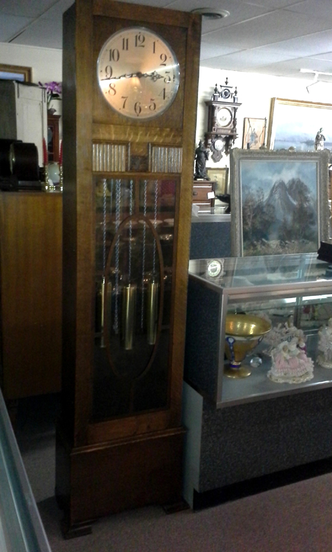 Embee Grandfather Clock in Oak Cabinet - Chimes on the quarter, half and on the hour ca. 1920