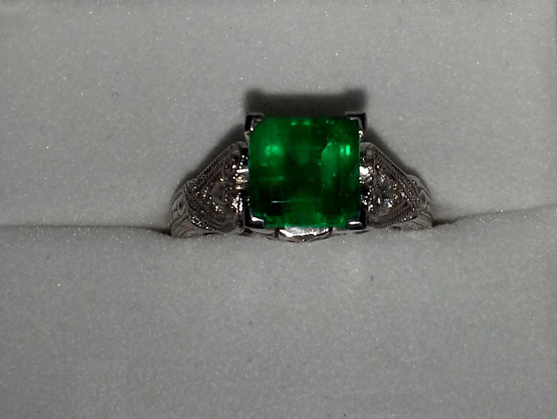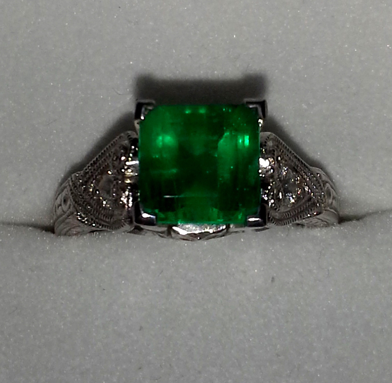 Emerald Ring with 18k White Gold, 2.37 ct. TW (approx.) Emerald with Diamond