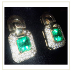 5.87 Ct. Emerald & 1.00 TCW Round Brilliant Cut Diamond Earrings set in 14k Yellow Gold with Post & Nut Closures