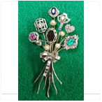 Stickpin Brooch Yellow Gold & Platinum with Diamonds, Rubies, Sapphires and Pearls